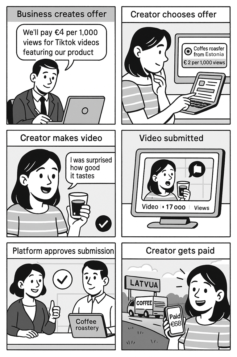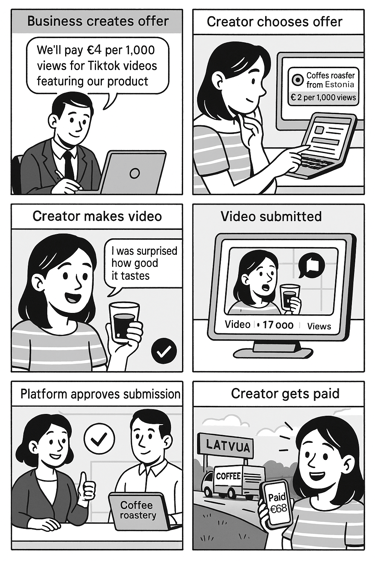 Uzņēmums palaiž kampaņu, satura veidotājs tai piesakās un izpilda! Bez liekām sarunām, ar skaidriem nosacījumiem.